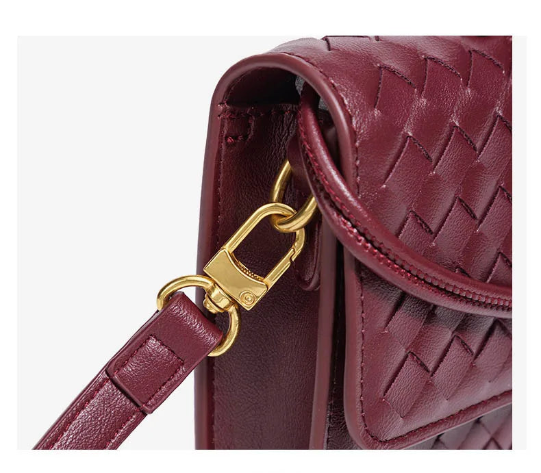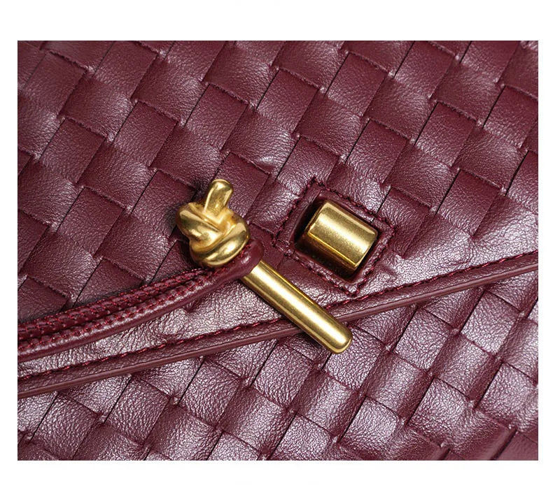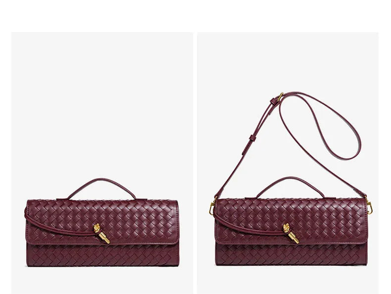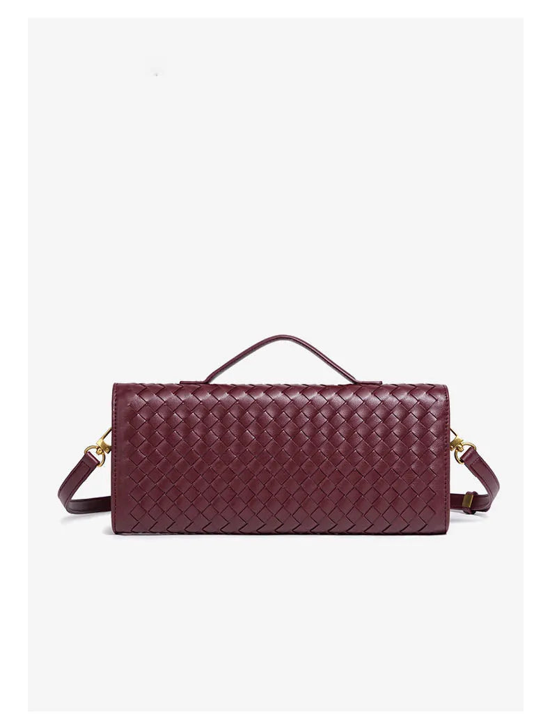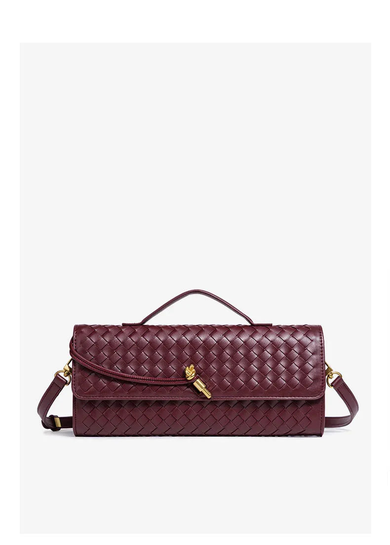 Design: Handmade woven accordion-style bag with a modern baguette shape.